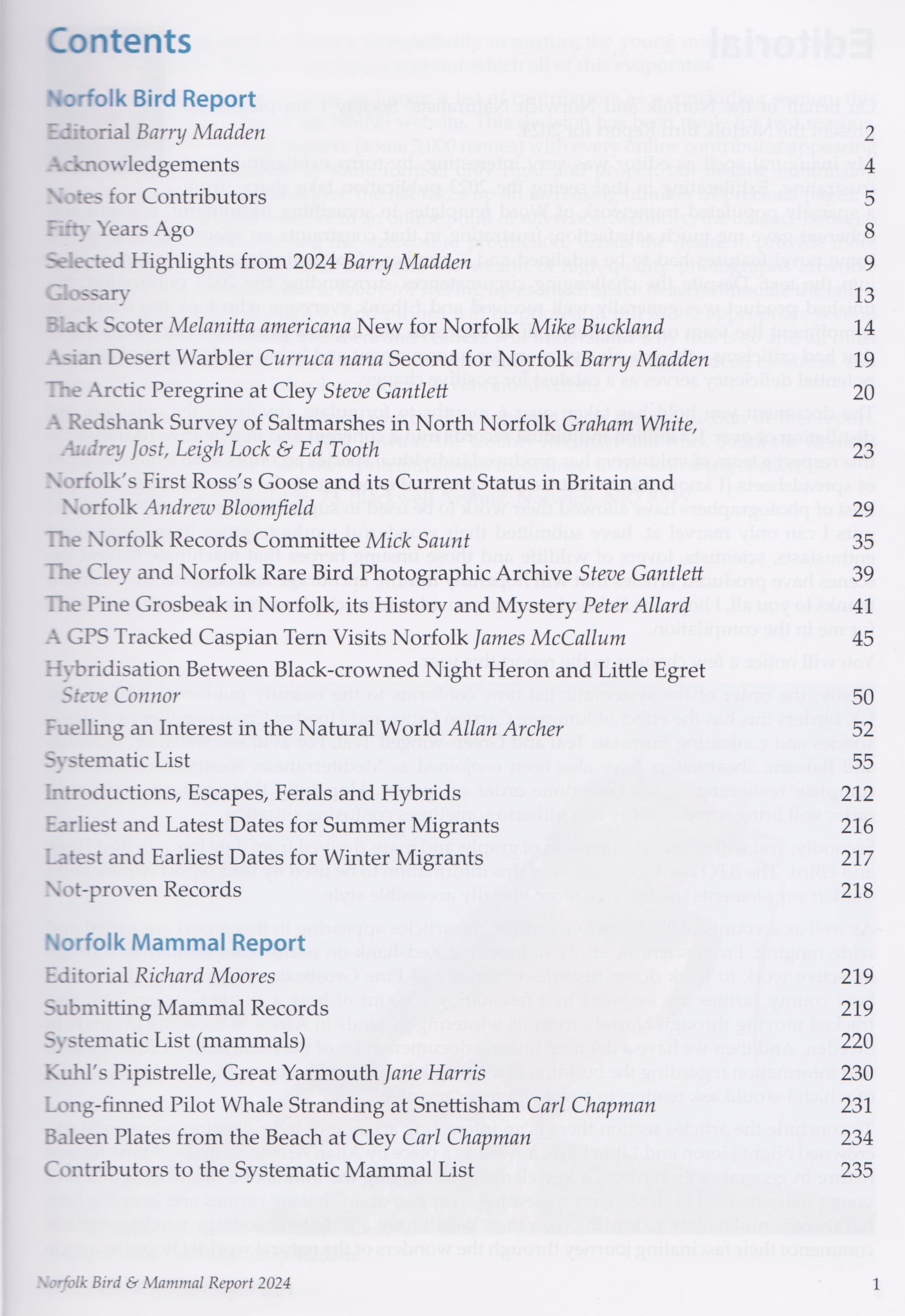 Norfolk Bird & Mammal Report 2024. – cost £17.00 including UK postage and packing