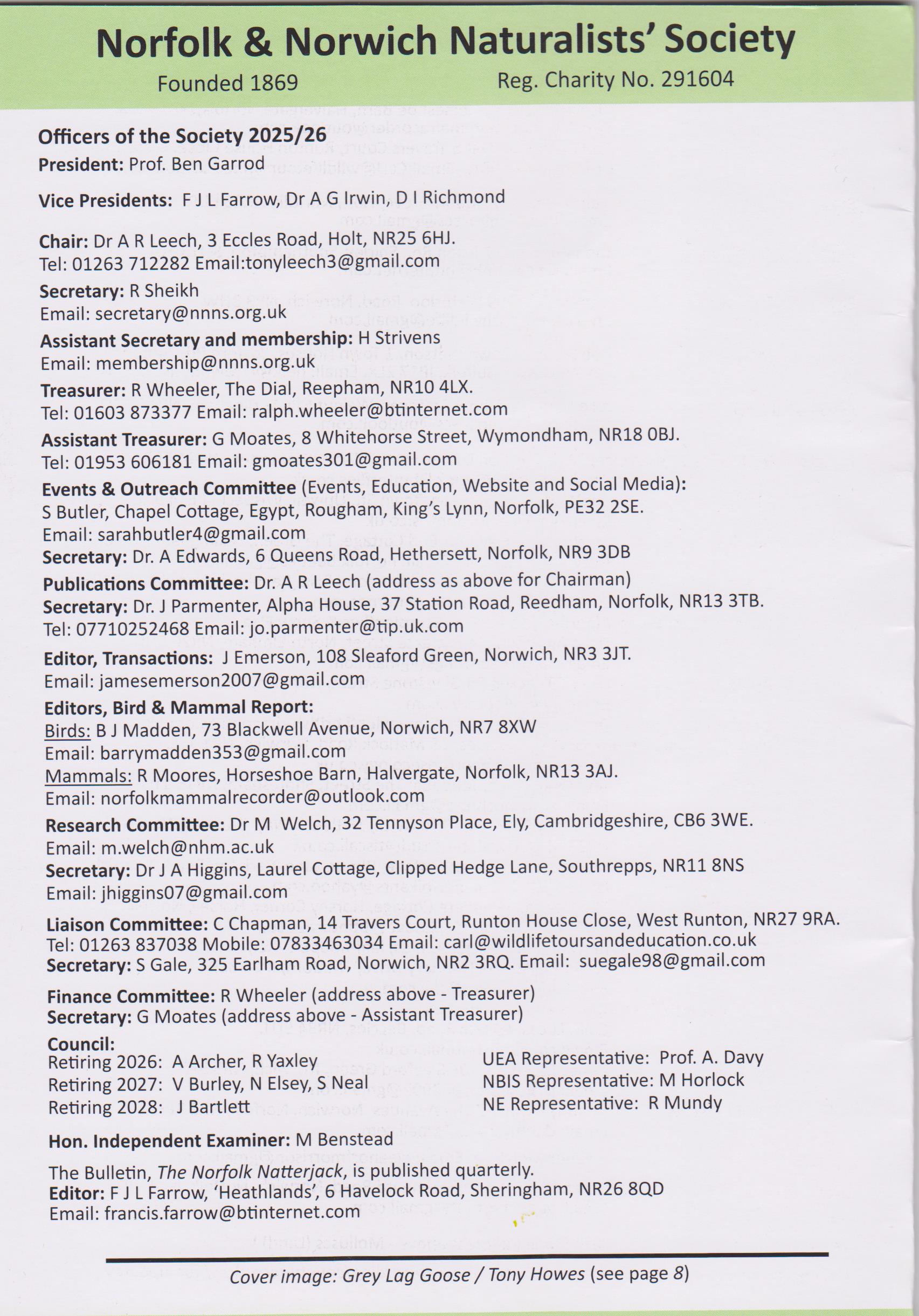 A full list of Officers of the Society is published in every edition of our quarterly bulletin, Natterjack, and Trustees are listed on the Charity Commission website and our Annual Reports.